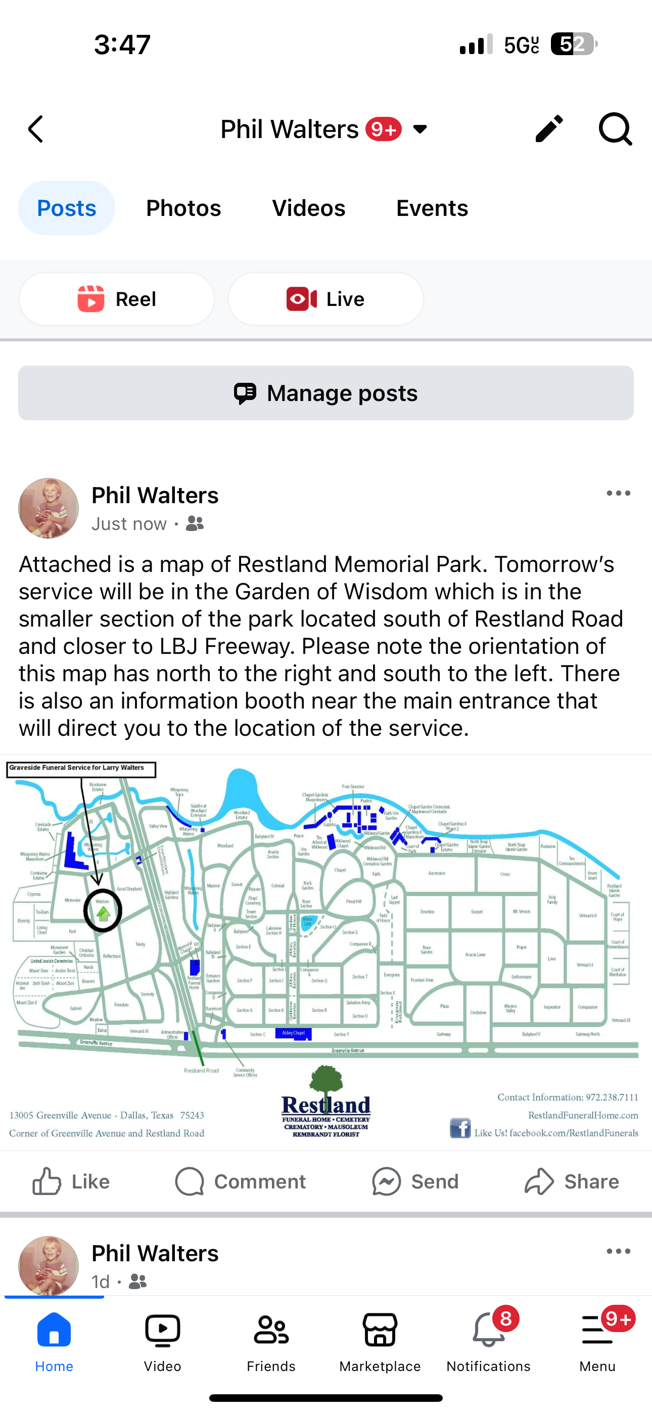 For anyone planning to attend the graveside service on Friday at 11AM...the service will be in the Garden of Wisdom in Restland. This is in the smaller section of the park that is south of Restland Road. It is closer to LBJ. We will be posting a map on Facebook that shows the location within the park. We will also have this map at the visitation on Thursday so guests can shoot a picture of it. If anyone sees this and is not planning to attend the visitation or is not on Facebook please feel free to contact me or Kelli Hlavenka directly and we will try to get it to you.